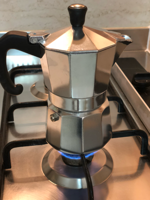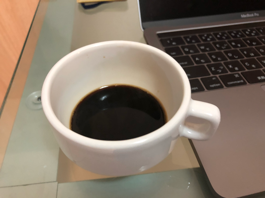ホテルにエスプレッソを入れる直火式コーヒーポットがあったので、スーパーで粉を購入して初エスプレッソに挑戦してみました!